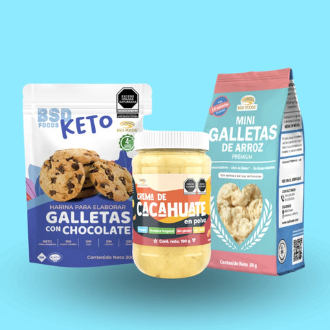⭐️ PREPARA UNAS DELICIOSAS GALLETAS DE CHOCOLATE, Este increible paquete ideal para consentir a los seres queridos, gracias a BSD Foods prepara unas Galletas con chispas de Chocolate acompañados con de una deliciosa Crema de Cacahuate y sin faltar las Mini Galletas de Arroz crujientes de Sal del Himalaya para cualquier momento.